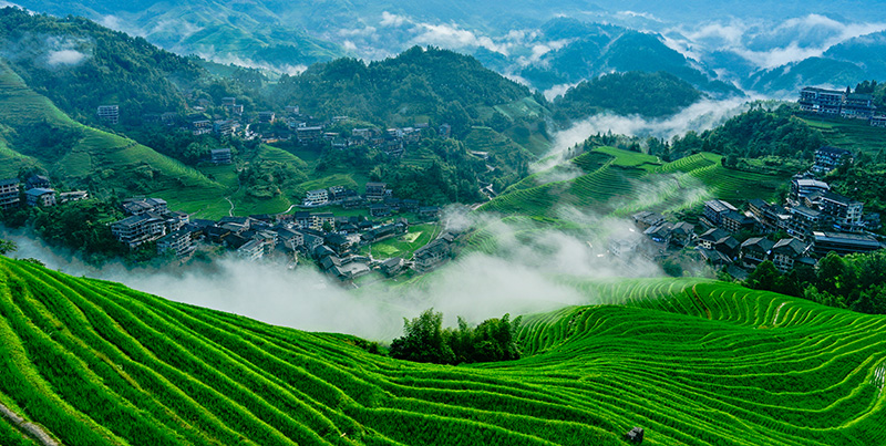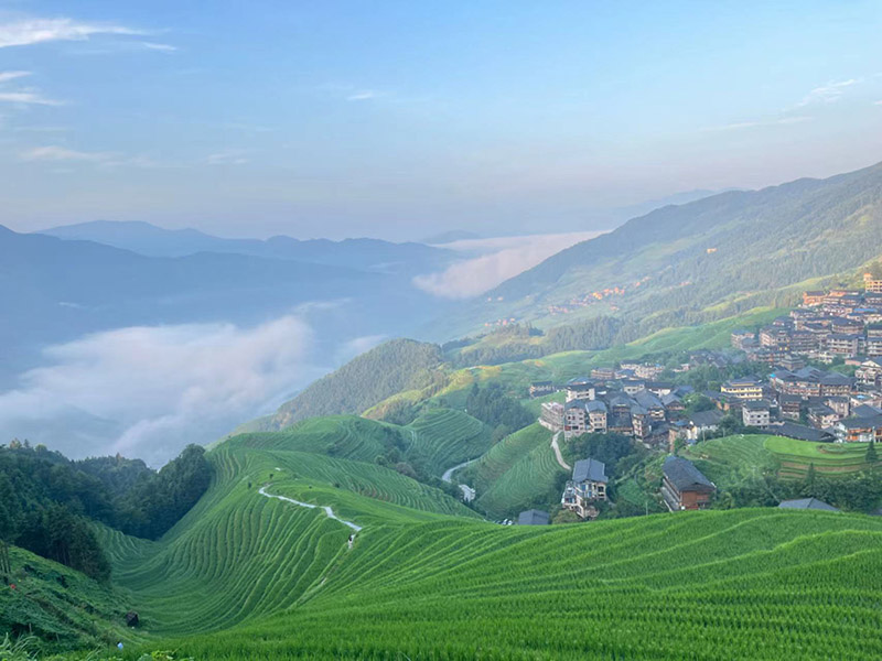 早上8點全體職工在公司門口集合合影留念后,乘坐大巴車從江華出發,歷經3小時到達廣西省桂林市龍勝縣龍脊梯田風景區。吃完午飯,短暫休息后就正式開啟了這次“龍脊”之旅。