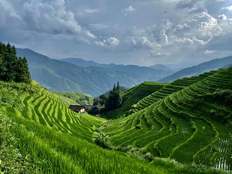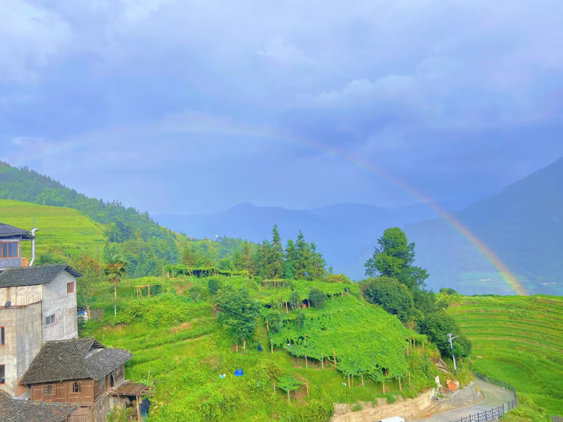 龍脊梯田的景色變幻無窮,時而云霧繚繞,時而陽光明媚,時而雨霧彌漫,時而晴空萬里。而雨過天晴天空又掛上了一道彩虹,真的讓人大開眼界。