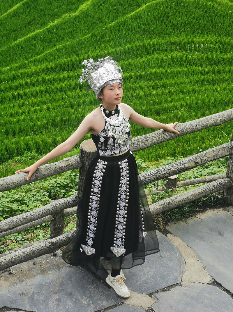站在觀景臺上,您可以俯瞰整個金坑梯田,層層疊疊的梯田宛如一幅宏偉的畫卷展開在眼前,美不勝收。觀景臺上很多少數民族服飾租賃,可以穿上民族服飾與梯田合影,體驗一下當地的風土人情。