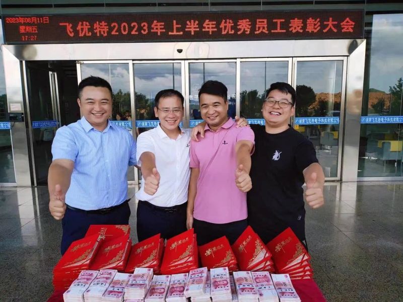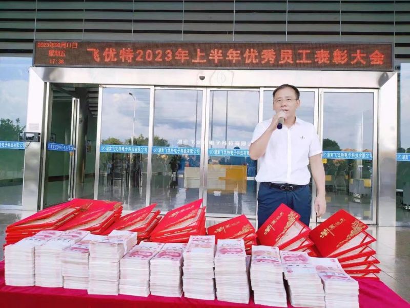 在飛優特,每一份赤誠的投入,每一個閃光的輸出,都不會被辜負。為感謝公司員工一直以來的辛勤付出,同時提升團隊凝聚力,表彰先進、激勵后進,增強員工榮譽感與歸屬感。2023年8月11日,湖南飛優特電子科技有限公司2023年半年度表彰大會在公司大廳前坪隆重舉行。董事長范德順、公司全體高管及職員參加了本次會議。